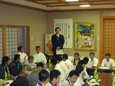 会長としての川渡り神幸祭は3年目となり、今年はホップステップジャンプのジャンプの年と位置付け、川渡り神幸祭を大きく飛躍する年にしたいと意気込みを語りました